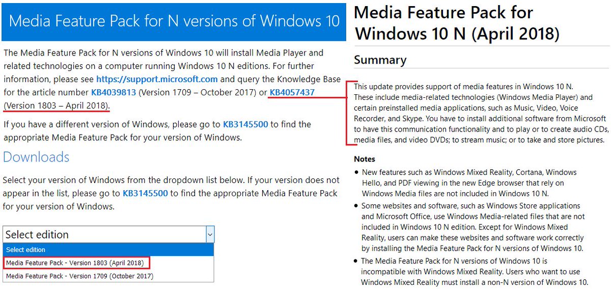 Media feature pack is an update package for the n and kn versions of the windows system. Pakiet media feature pack dla wersji n i kn systemu windows 10 umożliwia zainstalowanie odtwarzacza media player i technologii pokrewnych na komputerach, na których jest zainstalowana wersja windows 10 n lub windows 10 kn systemu operacyjnego. If i go to download windows 10 media feature pack the media feature pack for this version is not downloadable anymore and i really need this version to be able to run opencv.